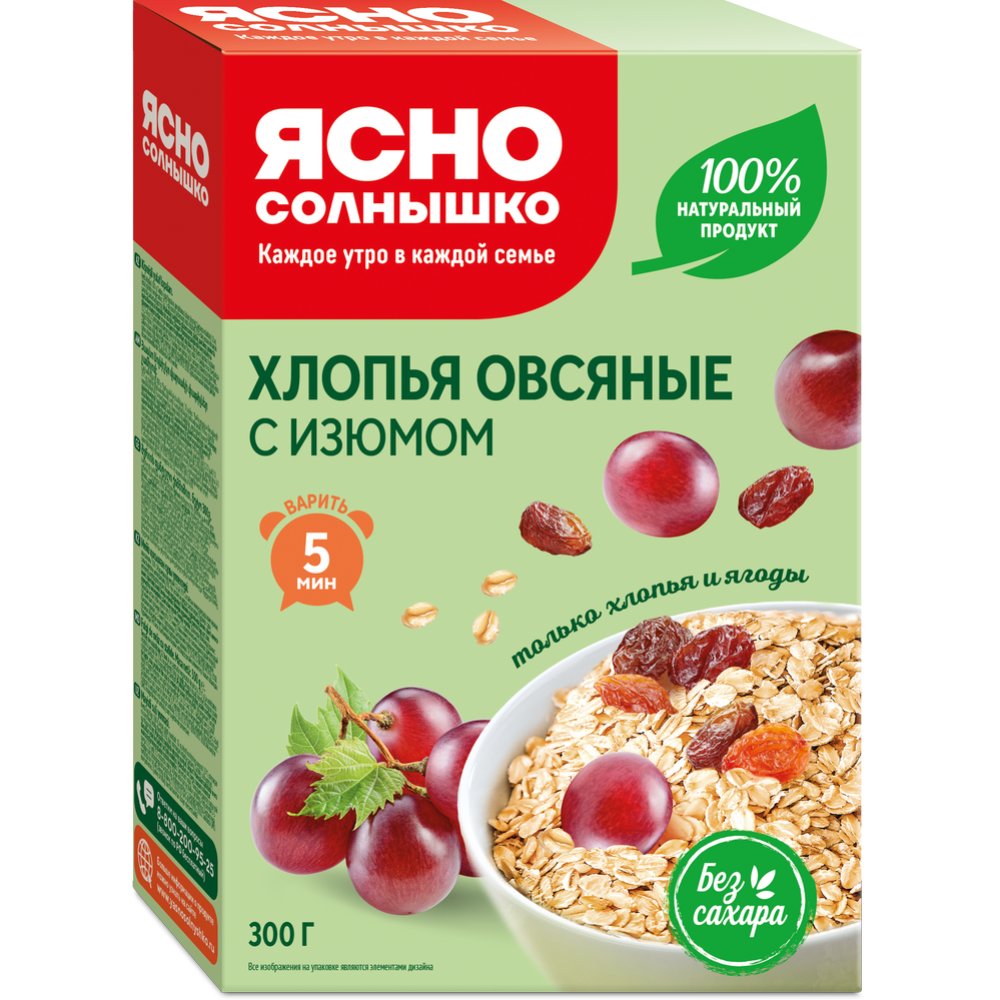 Хлопья овсяные «Ясно солнышко» с изюмом, 300 г.