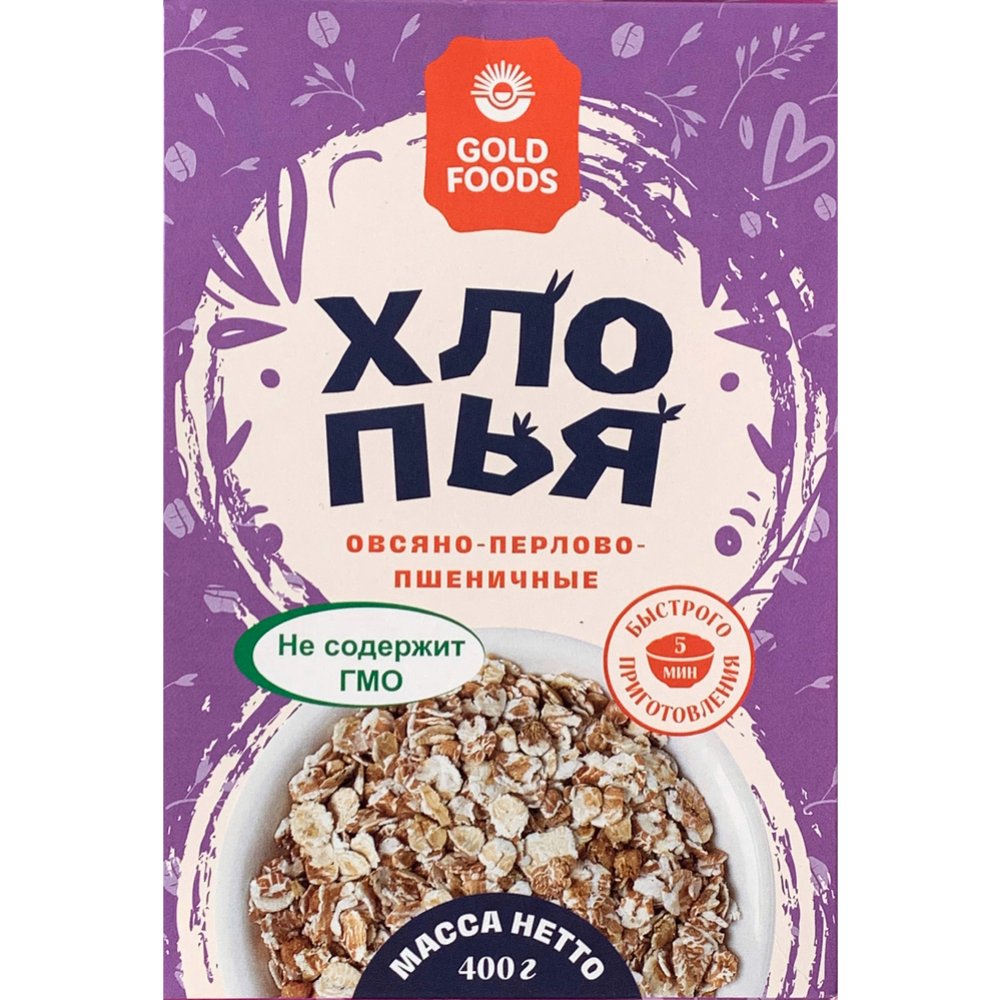 Хлопья «Gold Foods» овсяно-перлово-пшеничные, 400 г